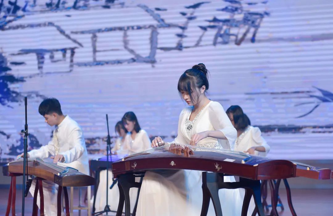 学生古筝齐奏《渔舟唱晚》,有慢有快、有弱有强,又不失音色柔美,温柔委婉,展现了我校素质教育的丰硕成果。