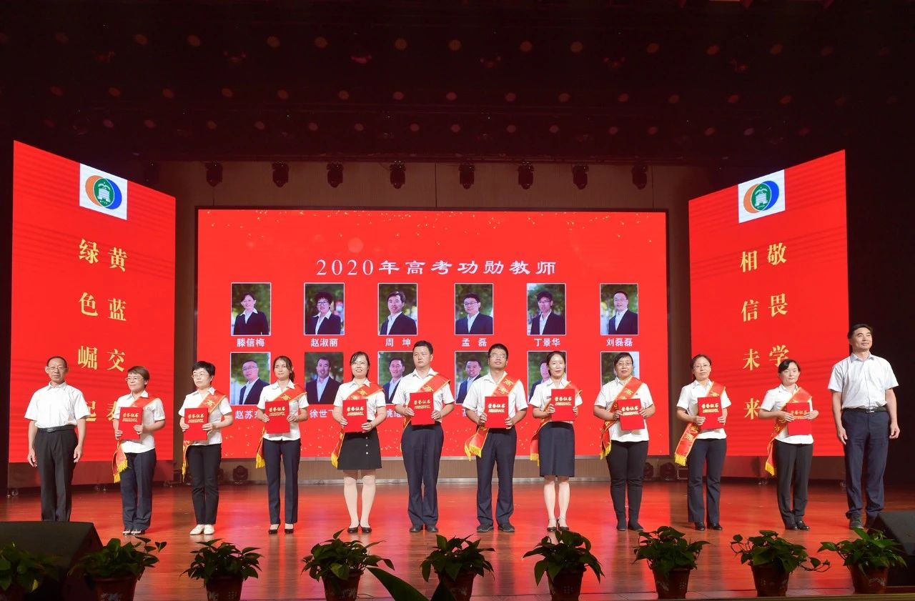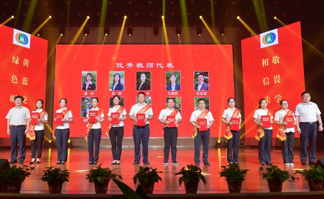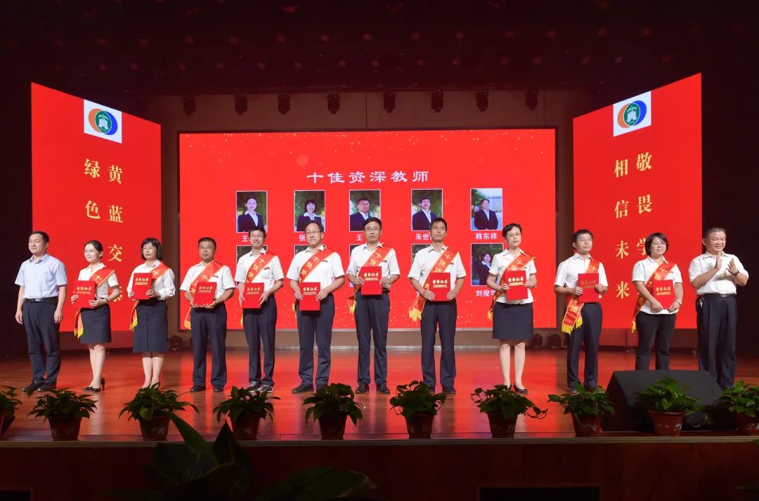 在欢快的乐声和热烈的掌声中,与会嘉宾分别为获得“十佳资深教师”“十佳师德标兵”“高考功勋班主任”“高考功勋教师”和“十佳服务标兵”的代表颁奖。