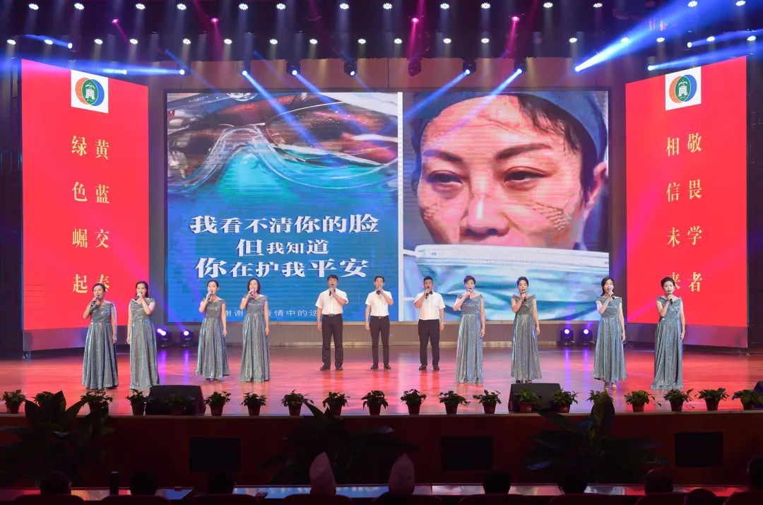 庆祝大会最后在一曲歌伴舞《再一次出发》中落下了帷幕。学校领导孙青山、田效方、董玉奎和广大师生员工一起观看了演出。