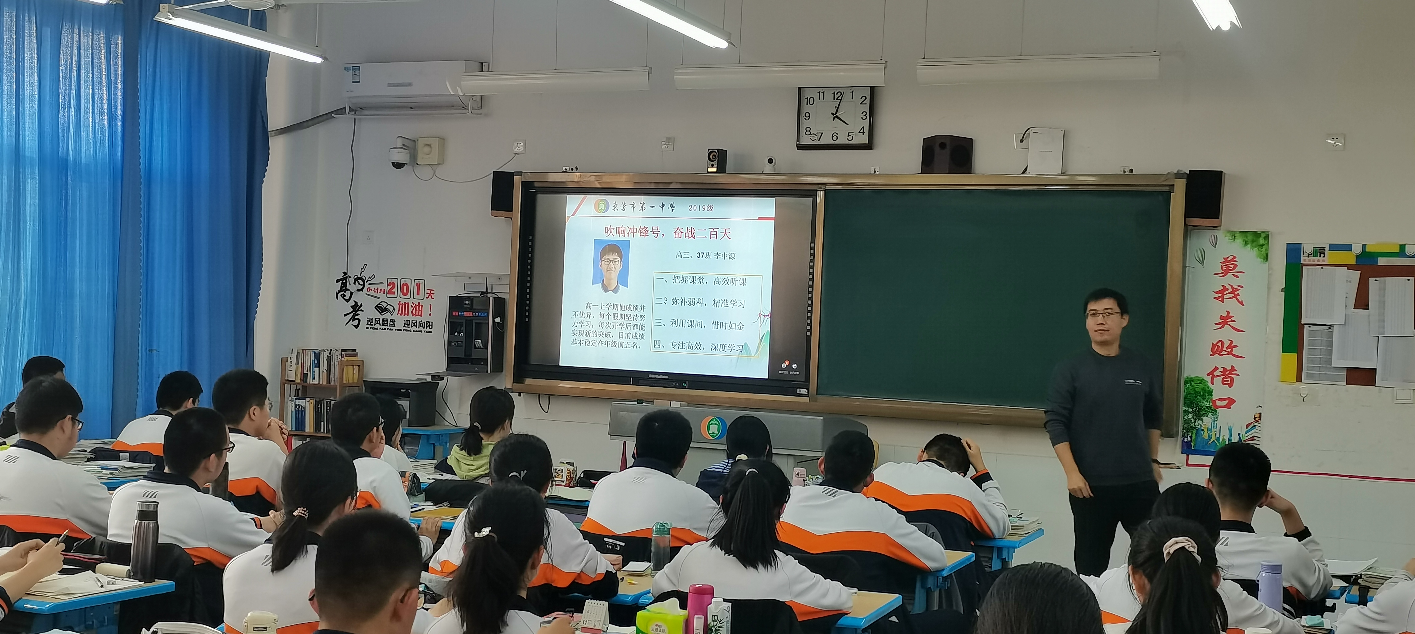 学生代表李中源、颜鲁豫、陈淑涵三位同学,不仅分享了他们的学习经验和方法,同时号召大家不负学校重托,不负恩师厚望,不负青春梦想,顽强拼搏,乐战不怠,全力以赴,续写一中辉煌。语文老师孙成霞以家长和老师的双重身份对同学们循循善诱,谆谆教诲:放下过去,消除杂念;认清现实,正视挑战;超越自我,不负韶华 。班主任黄小灵老师肯定了同学们进入高三后收获的勤奋、自觉、自律、主动、积极等这些美好品质,一定会为今后200天的备考助力。同时给大家提出三点建议:当重担压向你,接受它;当困难缠着你,干掉它;当意外撞上你,直面它。