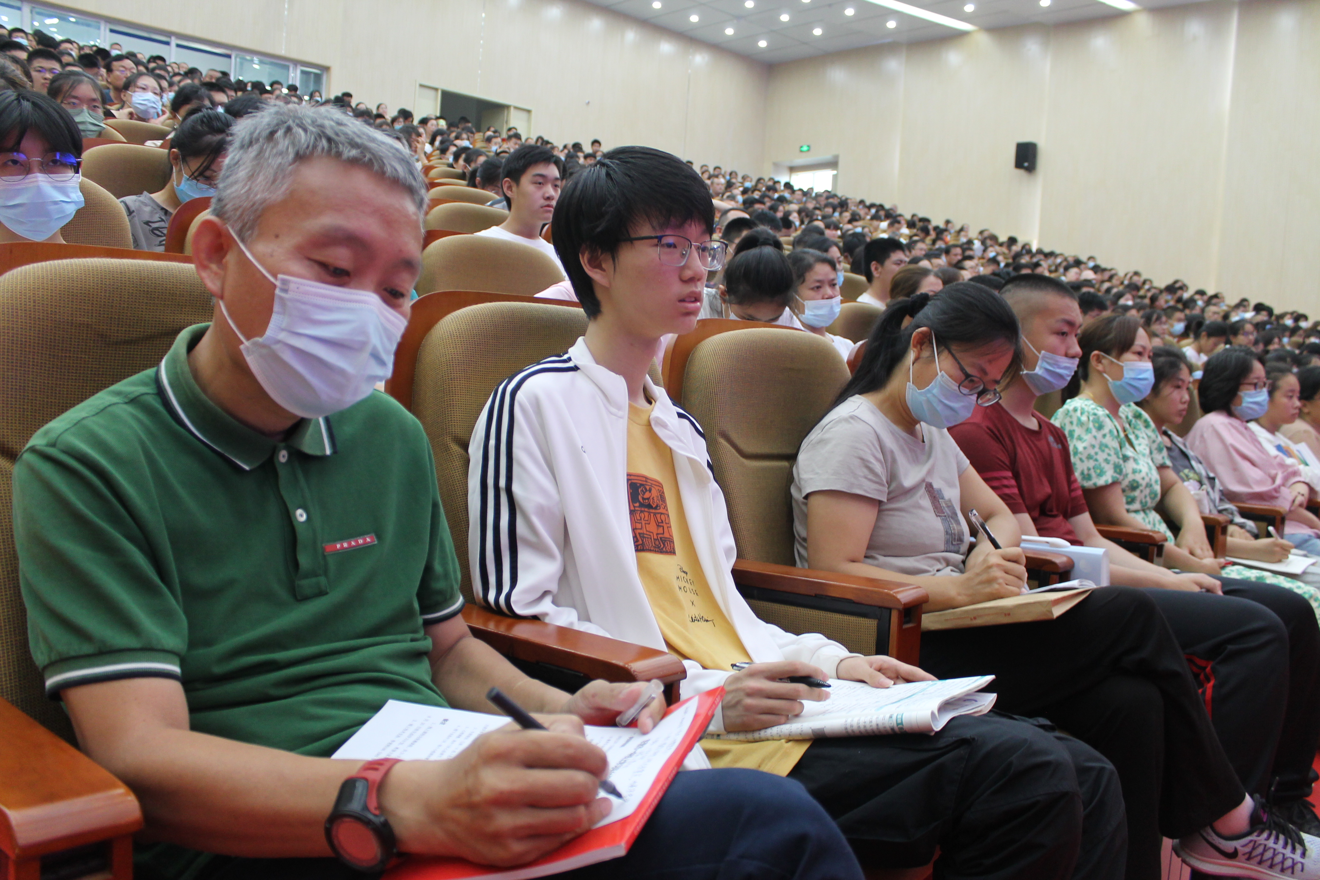 新生和家长们仔细聆听,认真记录。他们赞叹于市一中近几年优异的高考成绩,感动于市一中大家庭对贫困学子的关心和关爱,钦佩于市一中教师团队的敬业奉献,惊叹于史本泉校长对高中教学管理的驾轻就熟……
