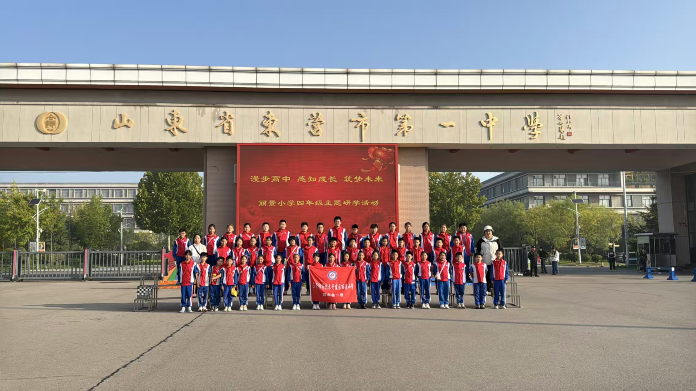 9月29日,秋阳暖照东营市第一中学,“智慧之光”雕塑映着晨光。国际部主任赵新玲、教务处主任李兴民热情迎接丽景小学四年级10个班的孩子们与带队老师,为这场研学之旅拉开温暖序幕。