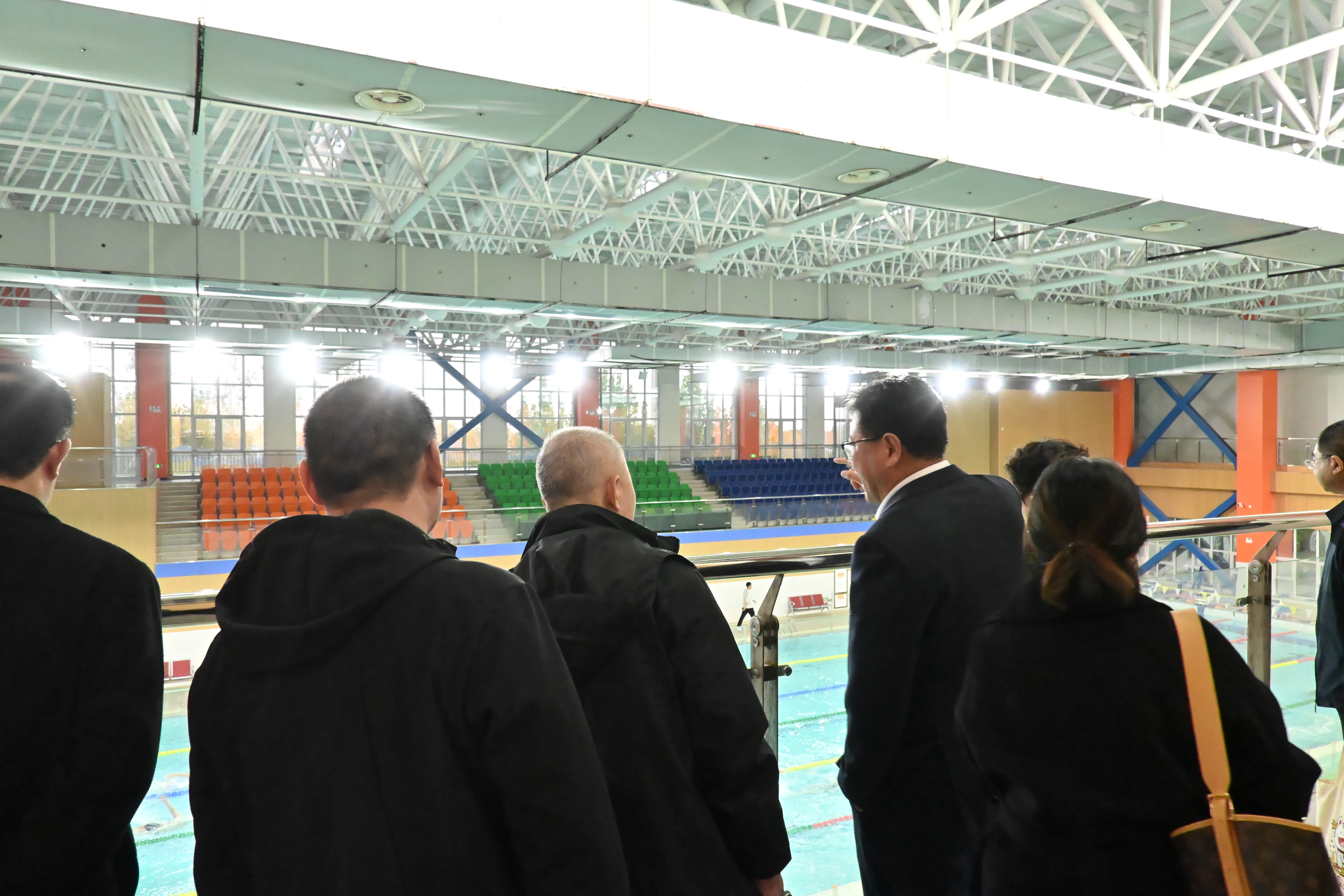 在李衡斌副校长的陪同下,两地市的教育同仁们参观了校园、校史馆、艺术馆、排球馆、游泳馆等,李副校长热情讲解校园文化。