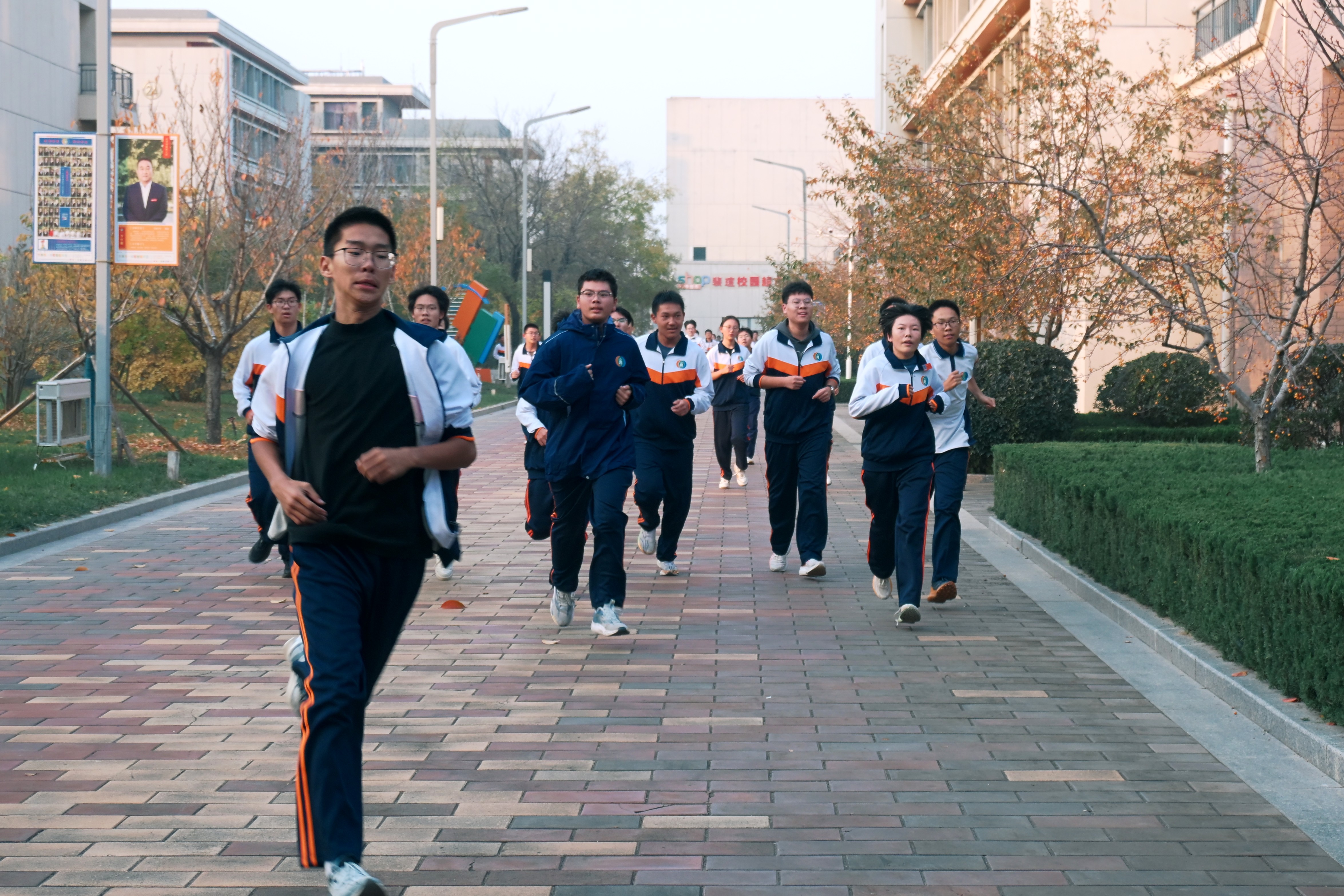 每天大课间,褪去课堂的沉静,同学们在校园的道路上自由驰骋。有的同学并肩前行、相互鼓劲,在奔跑中传递同窗情谊;有的同学奋勇争先、挑战自我,在加速冲刺中感受突破的喜悦。他们迈着轻快的步伐,脸上洋溢着纯粹的快乐,将活力洒满校园的每个角落。奔跑的身影与飞扬的笑声交织,勾勒出一幅生动鲜活的校园运动画卷。