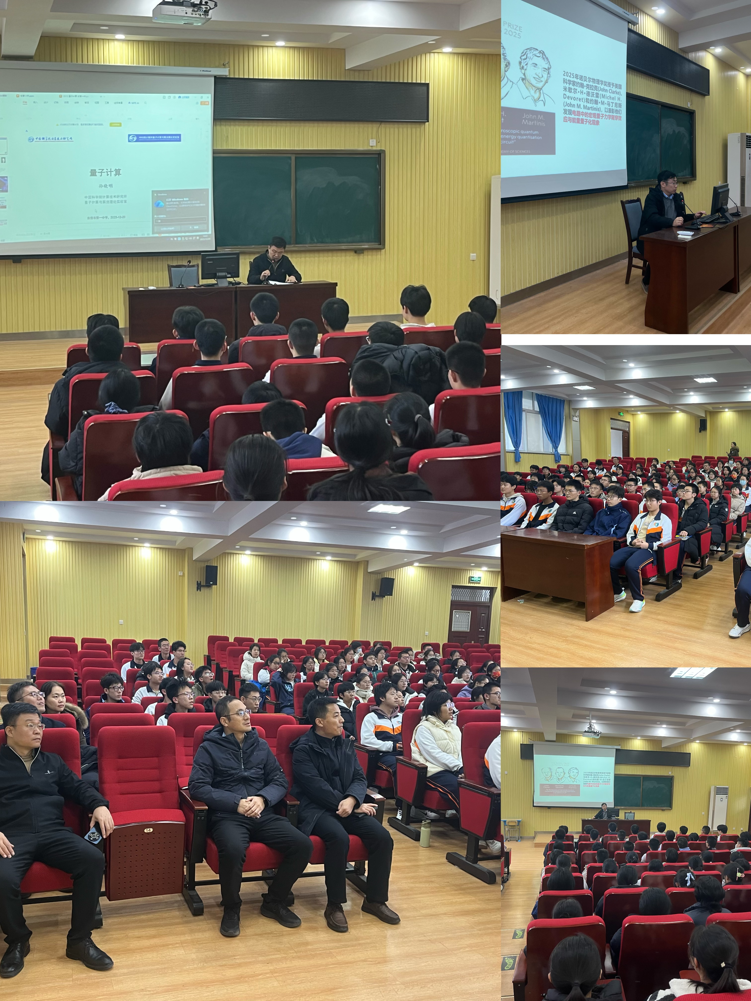 李主任带领招生组专家参观了校园,并给老师们详细讲解了我校独特的校园文化。随后,在高三的阶梯会议室,量子计算领域知名专家、国家杰出青年科学基金获得者孙晓明教授为同学们开启了一场通往未来科技前沿的旅程——《走进量子计算》科普报告。孙教授以生动形象的语言、深入浅出的比喻,从经典计算机的基本原理切入,逐步引出了量子力学中的奇妙特性,如叠加态、纠缠态等,并清晰地阐述了这些特性如何使得量子计算在解决某些特定复杂问题上拥有超越经典计算机的巨大潜力。他介绍了全球量子计算的发展现状、我国在该领域的战略布局与重要进展,以及未来可能带来的革命性影响。孙教授的报告不仅揭开了量子计算的神秘面纱,更激发了在场学子对基础科学和前沿技术的浓厚兴趣与无限遐想。