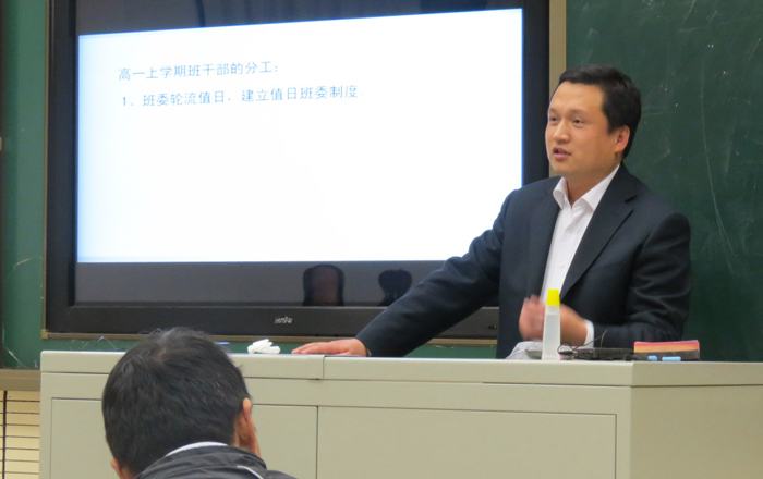 刘杰老师重点谈了班干部队伍建设的做法,他说:“班级建设,同学是基础,班主任是关键,班干部是主角。所以组建一支团结、高效、向上的班干部队伍,就显得尤为重要。”