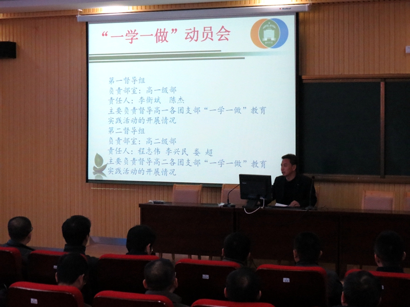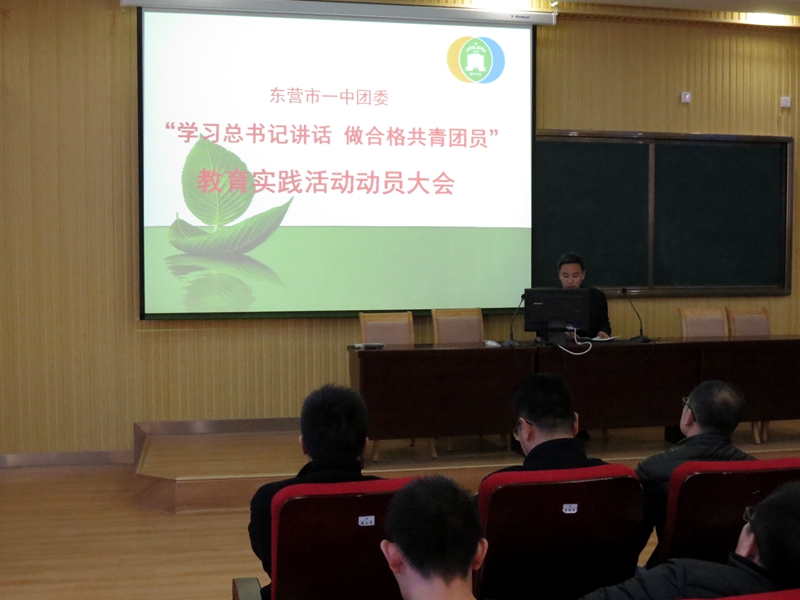3月15 日上午,根据团市委和教育团工委的工作安排,东营市一中团委召开“学习总书记讲话 做合格共青团员”教育实践活动动员大会,安排部署学校“一学一做”工作。全体班主任、级部主任参加了大会。
