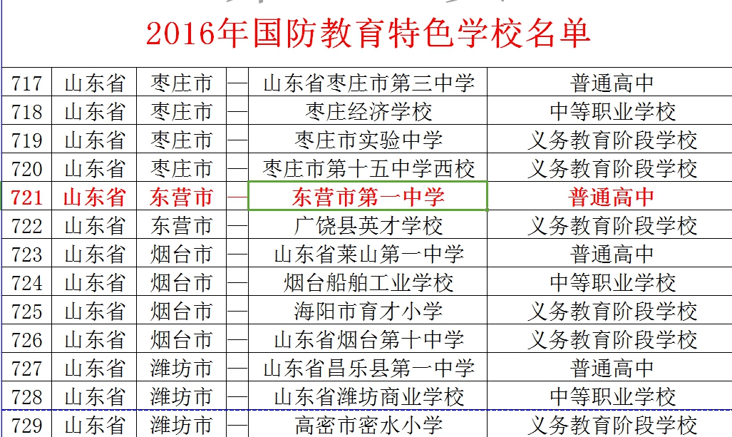 近日,喜讯传来,东营市一中被国家教育部授予“全国国防教育特色学校”荣誉称号。东营市共有两所学校获此殊荣,市一中是东营市唯一一所获得此项殊荣的高中学校。