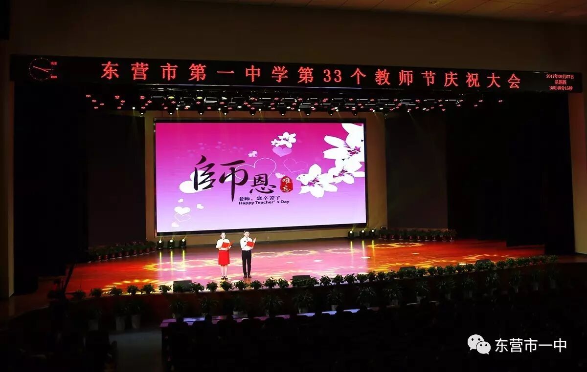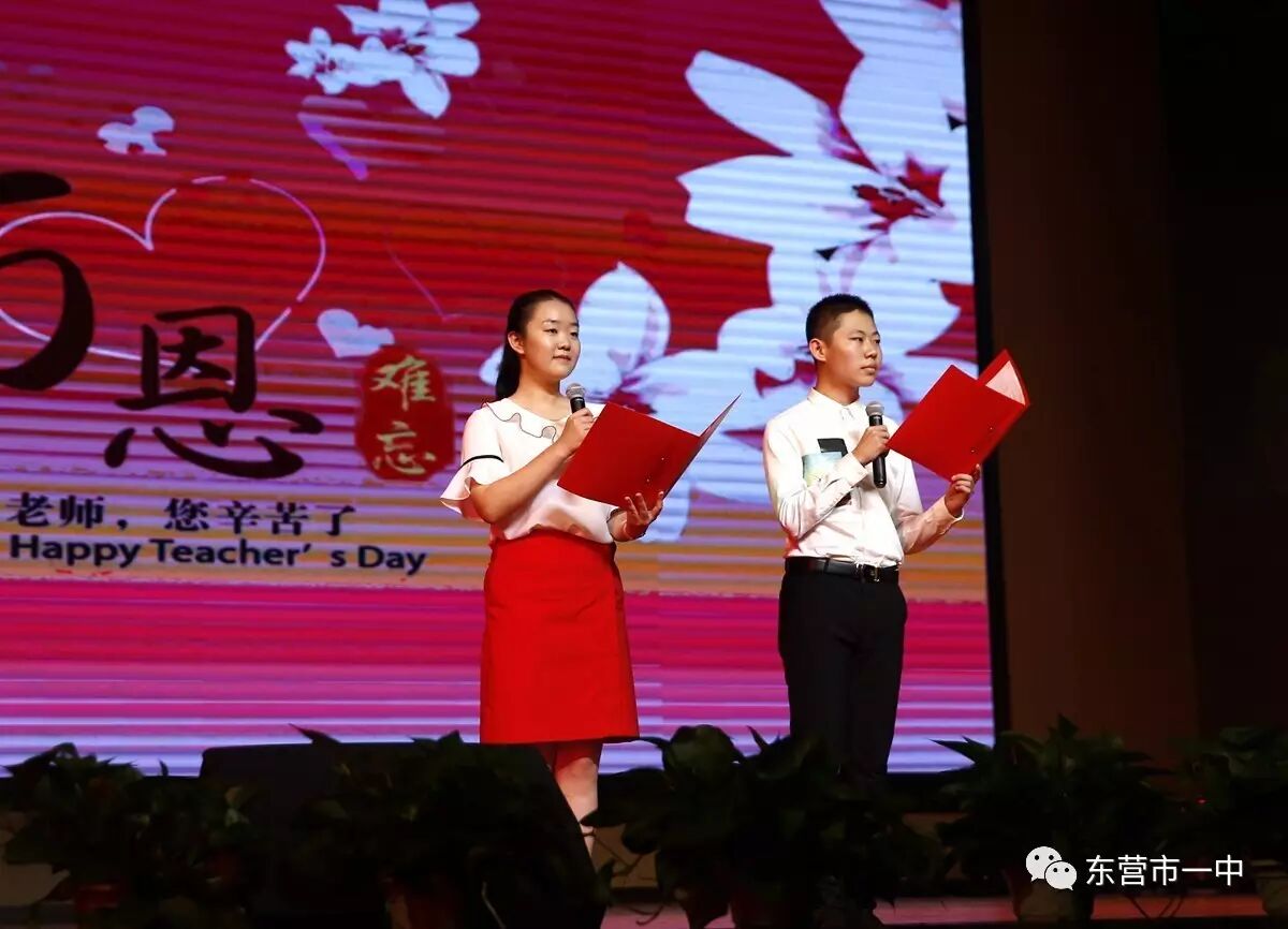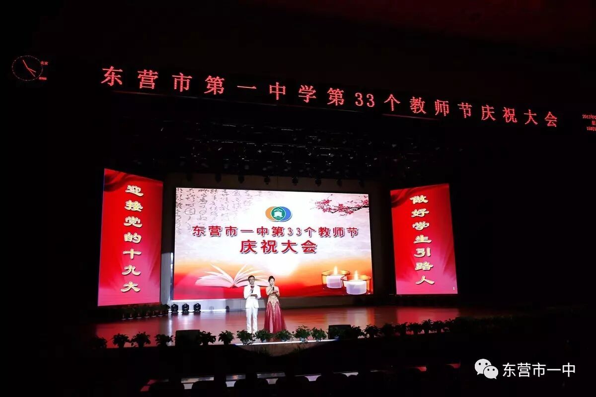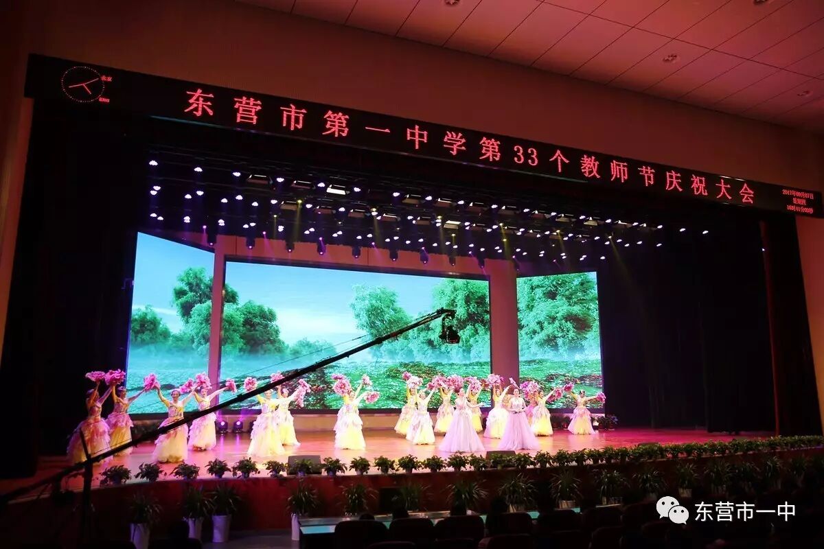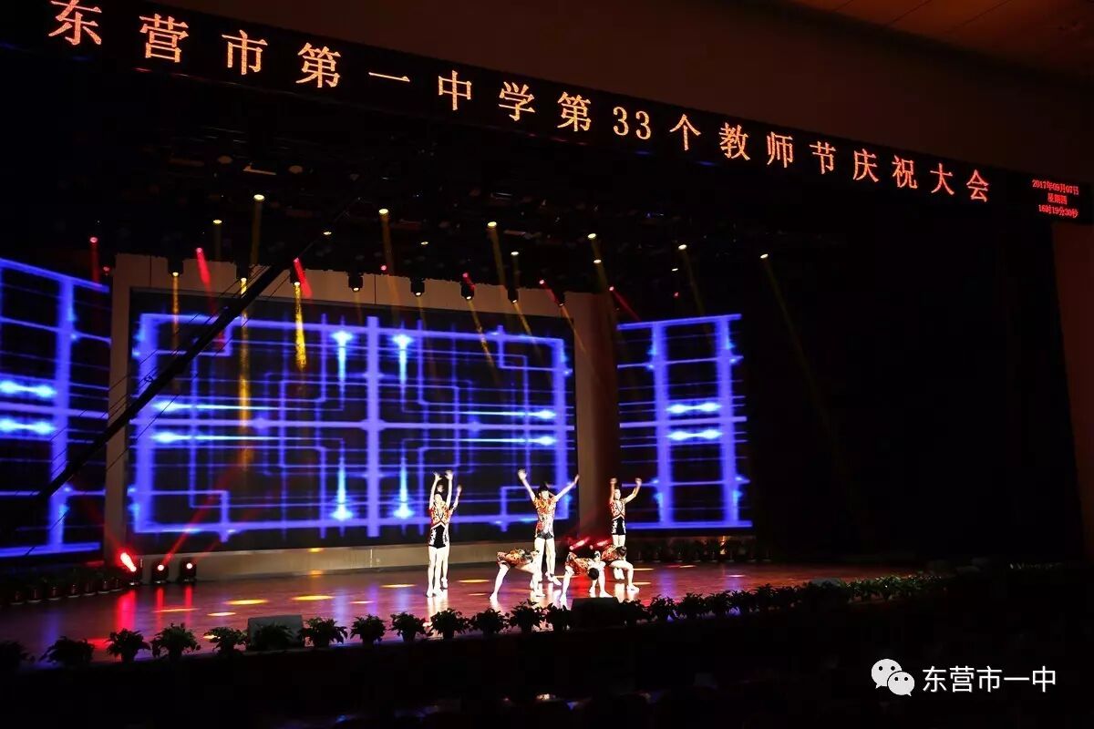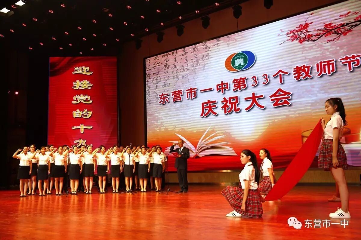学生们发自内心的教师节献词《金秋九月颂师恩》真情呈现了此次大会的主题,同时也表达了向老师致敬的款款深情。我校艺术特长生表演的舞蹈《报喜》动感十足、充满活力;由获全国大奖的我校学生健美操队带来的健美操表演《非常青春》炫丽多彩、魅力四射,展现了我校在艺体教育和艺体特长生培养方面所取得的优异成绩。会上,我校新入职青年教师面对国旗,集体宣誓,铿锵的誓言是每一位新教师的自我期许,更是对东营教育的庄严承诺。