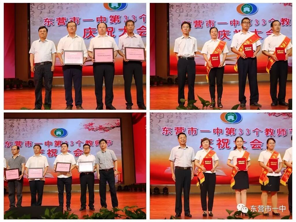 在欢快的乐声和热烈的掌声中,与会嘉宾分别为获得“新校建设标兵”“十佳资深教师”“十佳师德标兵”“功勋班主任”、“功勋教师”和“十佳新校建设单位”的老师们和单位代表颁奖。