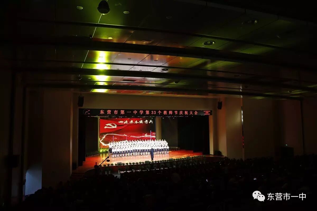 随着舞台大幕的徐徐拉起,市一中庆祝第33个教师节庆祝大会正式启幕。市一中教师合唱团带来的百人大合唱《四度赤水出奇兵》、《走向复兴》掀起了大会的第一个高潮,歌声“走向复兴,创造辉煌,前进,前进,向前进”大气磅礴,唱出了全体一中人创造辉煌、势不可挡的信心和决心,赢得了现场观众的热烈掌声。