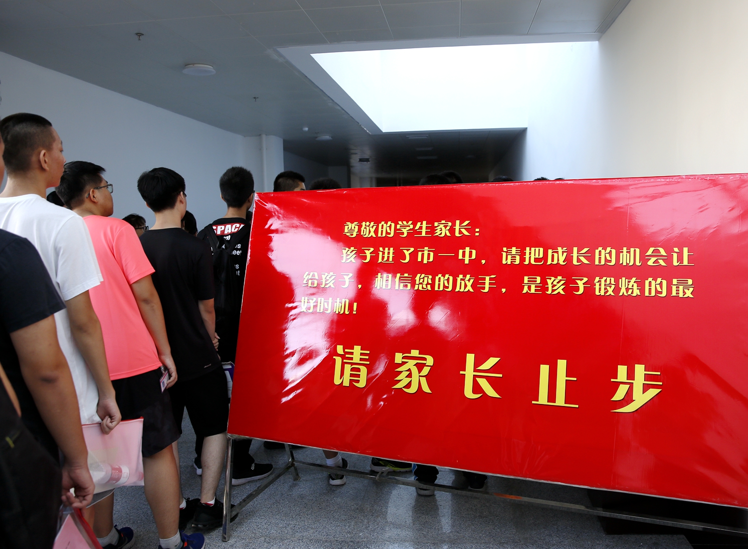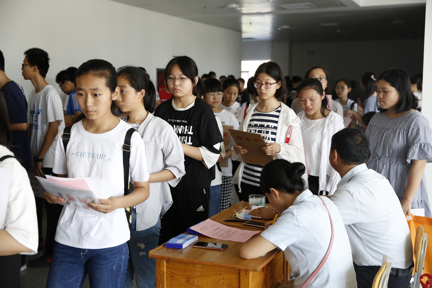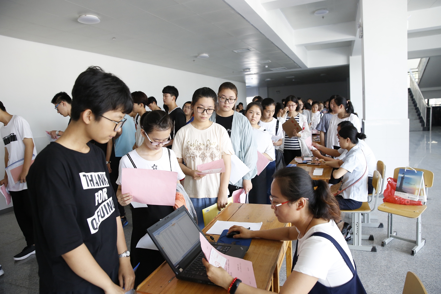 为了更好的帮助新同学尽快适应高中学习生活氛围,实现角色转变,学校要求新生独立完成所有入学手续的办理,家长均在礼堂休息区等候。