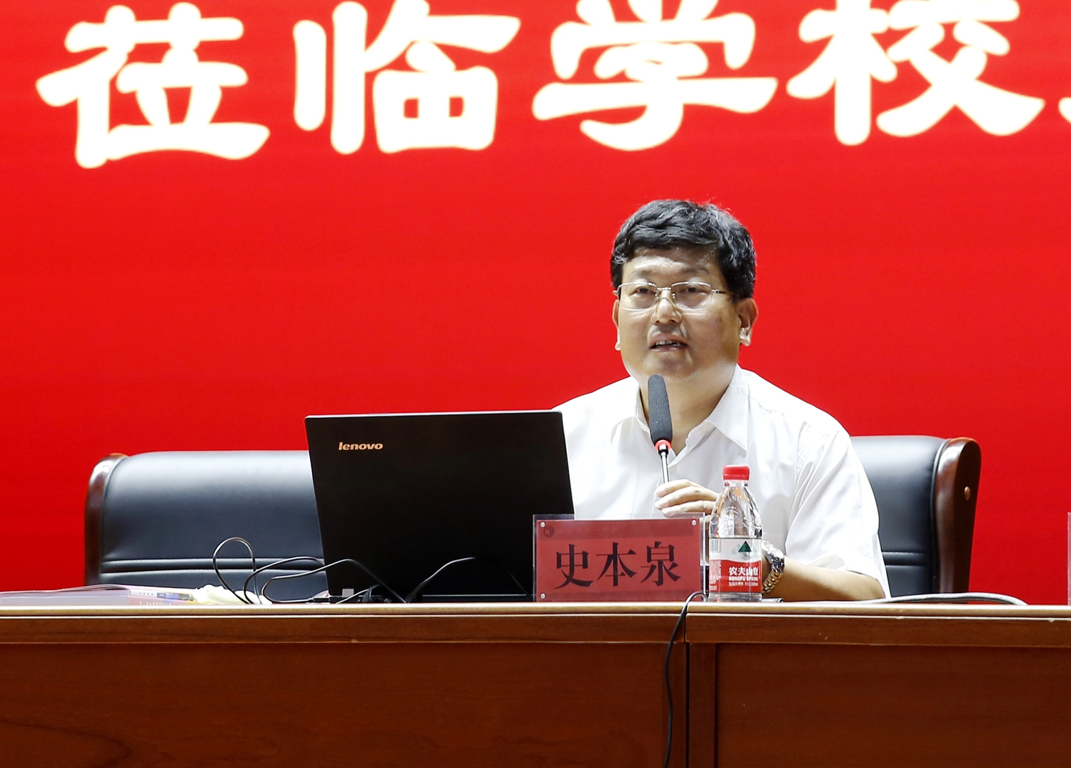 会上,史本泉校长首先代表全体一中人对2018级新同学加入市一中表示热烈的欢迎和祝贺,然后作了《戮力创名校、同心育良才》的专题报告。