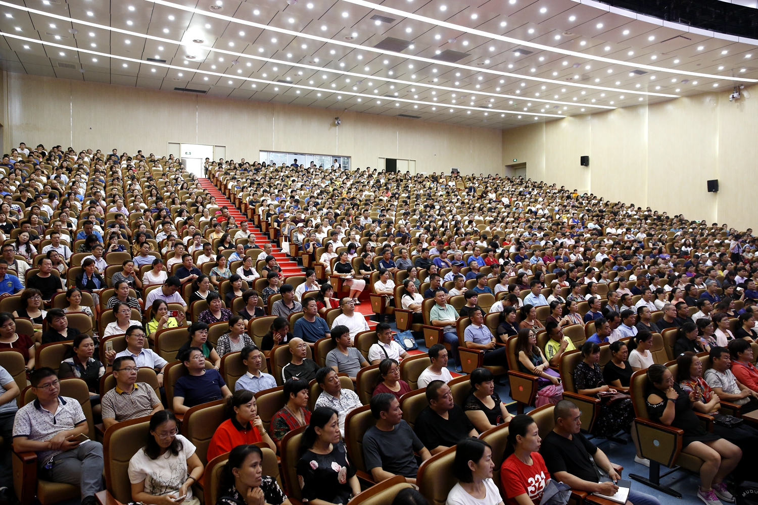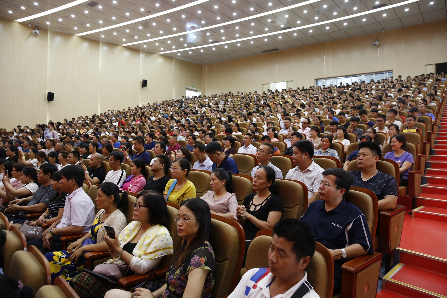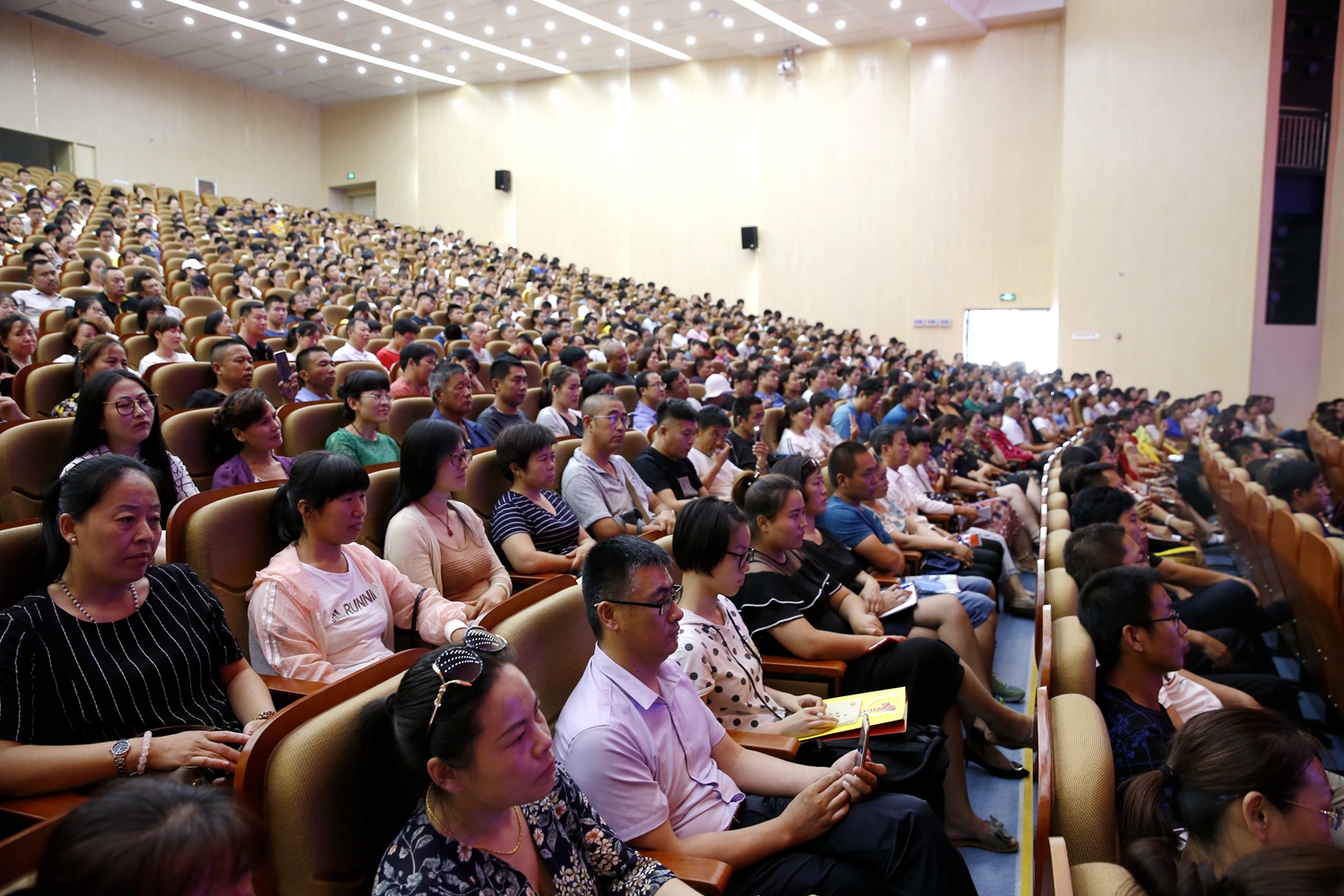 新生和家长们仔细聆听,认真记录。他们赞叹于市一中2018年优异的高考成绩,感动于市一中大家庭对贫困学子的关心和关爱,钦佩于市一中教师团队的敬业奉献,惊叹于史本泉校长对高中教学管理的驾轻就熟……。整场报告气氛和谐融洽,会场内不时爆发出热烈的掌声。
