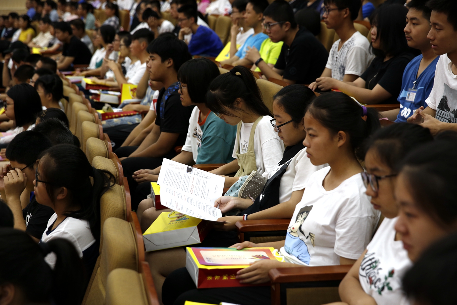 新生报到结束后,全体高一新生和新生家长5000余人分四次在礼堂聆听了史本泉校长所做的入校教育报告。
