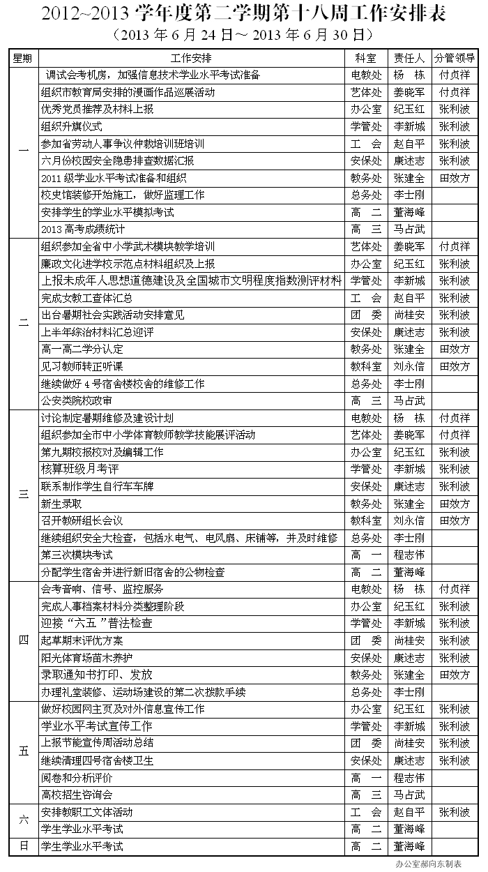 2012-2013二学期第18周工作要点